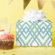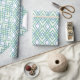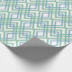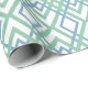 This wrapping paper has an art deco design of overlapping diamonds in verditer (green) and blue on a field of white.