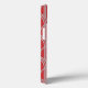 This phone case has a design made of domes and vertical lines in silver on a field of rust.