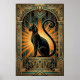 Honoring the ancient feline goddess through a sophisticated Art Deco lens, this seated black cat is framed by ornate gold pillars and intricate emerald patterns. A perfect blend of historical mystique and jazz-age glamour for the discerning collector.