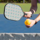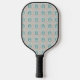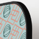This pickleball paddle has an art deco design of orange diamonds with right angles inside and teal circles with ovals overlapping, all repeating across the pattern. If you like the design but prefer different colors, message me.