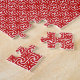 Puzzle in an Art Deco Japanese fan design patterned with a reproduction of a stylized Art Deco butterfly wallpaper - white on dark Chinese red, with an embossed gold base and a coordinating deco patterned background