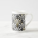 Digital reproduction of a classic, Art Deco wallpaper, fan pattern - white on black, embellished with gold