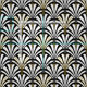 Digital reproduction of a classic, Art Deco wallpaper, fan pattern - white on black fabric, embellished with gold