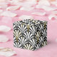 Digital reproduction of a classic, Art Deco wallpaper, fan pattern favor box - white on black, embellished with gold