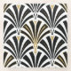 Digital reproduction of a classic, Art Deco wallpaper, fan pattern glass coaster - black on white, embellished with gold
