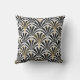 Digital reproduction of a classic, Art Deco wallpaper, fan pattern throw pillow - black on white, embellished with gold