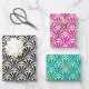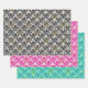 Art Deco Fan Pattern, Black/White, Pink, Aqua Wrapping Paper Sheets