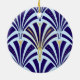 Art Deco fan pattern - cobalt and sky blue Ceramic Ornament