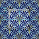 Digital reproduction of a classic, Art Deco wallpaper, fan pattern fabric - cobalt blue on light sky blue, embellished with gold