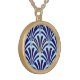Art Deco fan pattern - cobalt and sky blue Gold Plated Necklace