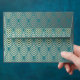Art deco, fan pattern, teal, white, fan pattern, c envelope
