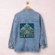 Art deco fan shell design gold blue roaring 20's denim jacket