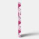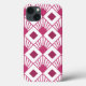 This phone case has an art deco design of beet-colored diamonds with diagonal lines and darker beet diamonds on a field of white.