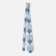 This necktie has an art deco design of dusty blue diamonds with diagonal lines and dark blue diamonds on a field of white.