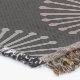 A quality printed throw has its advantages. This is a much finer weave throw than its loopier cousins, and though lighter, it is worth the investment for custom room accessorizing. The back is much prettier than the typical brown, and the fringe on the long sides very vivid, the selvage nicely done. Before photographing, I washed the throw in cold water, delicate, with a thicker woven throw the same size. On tumble dry low, this throw was dry in half the time as the other. This is a very practical quality if you use throws for furniture covers or to wrap up in frequently. The sleekness of the fabric makes it a great layer for accenting or protecting without the feeling of sitting on too much stuff. Perfect for napping or when you feel a light chill coming on. The color printing is beautiful and on this fabric, matched the design and color of my Photoshop image. This is an advantage for blending room fabrics and colors. The fringe on the short sides prints the colors from the design image and therefore varies from the side fringe. I streaked a white fractal line through the plaid pattern to give the illusion of weaving. This printed as crisp as an illusory thread, and put some white in the short side fringe, showing another advantage of print vs loomed- for artistic purposes, line lines, detail, and color integrity can be planned and preserved. My loomed throws have color limitations and more of a needlepoint texture. Print throws reproduce an exact image. The throw felt a little stiff straight out of the package, but this went away in the first delicate wash. Of course I searched the wash water for ink or bleeding and there was none.