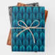 Art Deco Feather Pattern, Blue, Copper, Pewter Wrapping Paper Sheets
