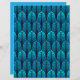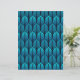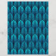 Paper in a vintage Art Deco wallpaper pattern based on a stylized feather in shades of cerulean and peacock blue on a dark navy / indigo blue background