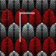 Art Deco Feather Pattern, Silver Gray and Red Fabric