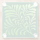 A stylized, Art Deco fern wallpaper pattern glass coaster in a soft, shaded, green gradient against a deep, emerald green background