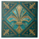 Art Deco Fleur-de-lis - Aquamarine and Gold Ceramic Tile