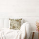 Throw pillow with a design depicting delicate flowers and palm leaves are arranged in an intricate pattern. The composition features muted tones, creating a harmonious effect.