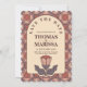 "Announce your big day with this stunning 'Save the Date' card, featuring an intricate Art Nouveau-inspired floral motif and a vintage stained glass pattern. The warm earthy palette of terracotta and dusty rose provides a romantic, retro-modern feel. The background pattern colors are 100% adjustable, allowing you to customize the design to match your unique wedding theme. The back includes a functional QR code so your guests can instantly access your wedding website for travel and RSVP details."