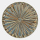 Art deco/art nouveau jewel emblem look flower sticker. Flower is metallic, jewel like in colors of gold, silver, blue on a gold background. For any crafting need.
