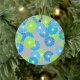 Art Deco flower pattern - blue and lime green Ceramic Ornament