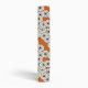 An Art Deco pattern based on a traditional, stylized chrysanthemum pattern used in Japanese textiles, in creamy white outlined in black with a rust orange background