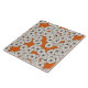 An Art Deco pattern based on a traditional, stylized chrysanthemum pattern used in Japanese textiles, in creamy white outlined in black with a rust orange background