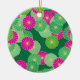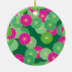 Art Deco flower pattern - shades of green, fuchsia Ceramic Ornament
