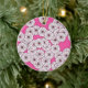 Art Deco flower pattern - white on deep pink Ceramic Ornament