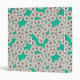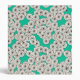 An Art Deco pattern based on a traditional, stylized chrysanthemum pattern used in Japanese textiles, in white outlined in dark chocolate, with a rich turquoise / peacock background