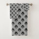 I have created this towel set using an art deco geometric pattern and colored it in black and gray. These towels would make a great addition to any bathroom, especially an art deco themed bathroom. Very smart. The bath towel measures 30 x 60 inches. The hand towel measures 16 x 28 inches. The wash cloth is 13 x 13 inches.