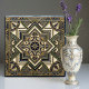 Add a touch of celestial charm to your decor with this stunning Art Deco ceramic tile. The design features a captivating central starburst motif surrounded by intricate geometric patterns in rich navy blue, deep green, and radiant gold. The interplay of sharp lines and curves, set on a classic ivory backdrop, creates a visually dynamic and elegant statement piece. This tile is an ideal choice for those looking to infuse their living spaces with a sense of historical grandeur and artistic flair, perfect for accent walls or backsplashes.