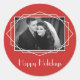 This art deco inspired geometric holiday sticker is personalized with your own special photo, on a festive red background keeping it simple and elegant for the holidays.