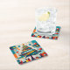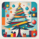 Art Deco Geometric Joyful Christmas Tree with Gift Square Paper Coaster