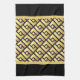 A Beautiful Art Deco Style Kitchen Dish Towel In A Golden And Black Pattern.