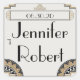 This beautiful and elegant design, called Art Deco Gold Posh Wedding, has a beautiful art nouveau inspired design. The background is cream with a thin gold and black stepped border. In the lower corners there are semi-circle design elements. At the top there is a box for text with filigree designs. Perfect for a 1920s vintage style or garden wedding wedding. Please email me for matching designs and products or with custom requests at noteableexpressions@gmail.com. This set has invitations, save the date cards, response cards, thank you cards, table number tent cards, envelope seals, wine labels, binders, return address labels and many more day-of wedding stationery pieces, favors, and gifts available. Use the envelope seal stickers for any of your DIY gifts - these are available in both large and small sizes! All elements are printed on our high quality products, they do not include any real gold, jewels, embossing, or other textile elements. All designs are copyright Noteable Expressions, Inc. All rights reserved.