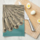 Art deco gold teal metallic look fan shell design kitchen towel