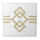Faux gold and white art deco style simple geometric detail ornament decorative border ceramic tile. The tile is made of three squares and lines. Please note that the gold in this design is a flat yellow beige color print and is not an actual gold color or foil. Original design, perfect for modern or art deco vintage style interior.