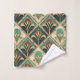 A Bath Towel Set Design In A Green, Brown And Gold Style Art Deco Pattern