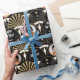 Add a touch of Art Deco style to your birthday gift with this custom photo wrapping paper! An elegant gift wrap featuring a geometric pattern of interlocking fans, stars, and circle-shaped photo frames. Personalize the template with two of your favorite photos, and the recipient's name in retro-style typography. A perfect design for a glamorous occasion! This seamless pattern gift wrap is printed on premium quality paper with your choice of a matte or glossy finish. Different length rolls are available from 6 feet - 60 feet. Colors: black, white, and a simulated gold glitter effect.