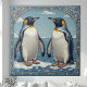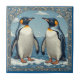 Art Deco Ice Birds Penguin Couple Snow Blue Ocean Ceramic Tile