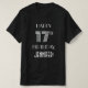 This 17th birthday party shirt design features the message "HAPPY 17th BIRTHDAY,", along with a customizable name. The message and digits have an art deco inspired look, reminiscent of the 1920s/1930s. Shirts like this might be worn by the attendees at a birthday party being held in celebration of somebody’s seventeenth birthday. [~Z0000479]