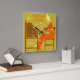 This personalized square wall clock has a vintage Art Deco stencil look. A woman in an orange dress sits at a writing desk with pen raised while a lamp shines next to her. The background is dark gold. The woman looks like she is from the 19th or early 20th century. The design has a modern stylized feel.