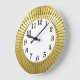 Great price for a very nice product. Arrived a day early - unheard of these days. The outside gold area has a little more orange tone to it than shown in the picture. Great packing so product can't get damaged. I used the same packing to forward the clock to my brother and sister-on-law for the 50th wedding anniversary. Printing was just as expected - lovely!