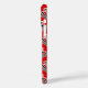 Phone case in a reproduction of a stylized, Art Deco lily, wallpaper pattern - a gradient of light silver gray / grey to dark graphite, accented with black, on a deep Chinese red background