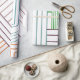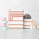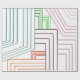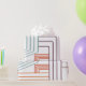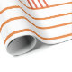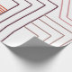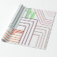 This wrapping paper has an art deco design of lines in purple, pink, orange, and blue.