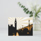 An art deco inspired post card of London featuring Big Ben and Westminster Bridge.